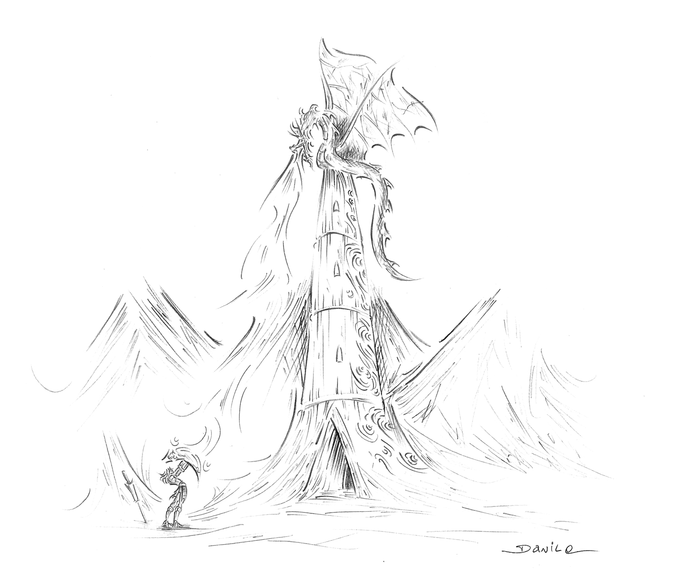 Os degraus pareciam não ter fim, eram numerosos e o aesir se cansou de serpenteá-los como um gato atrás de um rato, estava apreensivo, com um certo medo e seu coração, ora ou outra disparava pois o demônio que o aguardava lá em cima, fazia aquela bendita torre tremer com o balançar de sua calda que não cessou nem por um instante sequer.